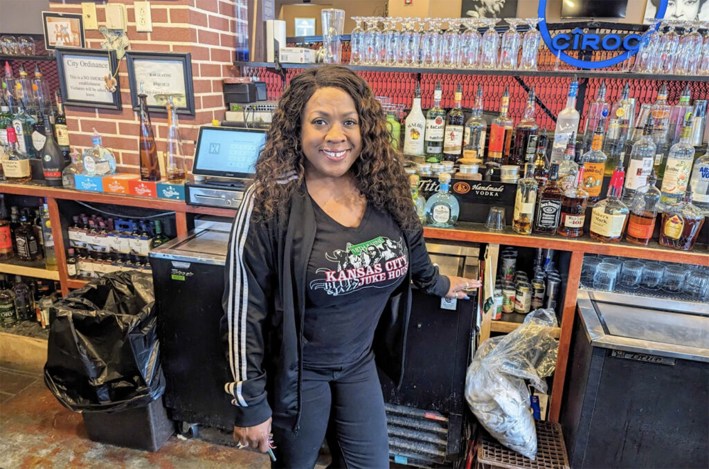 Andrea Shelby, 56, owns The Kansas City Blues and Jazz Juke House. It’s a popular bar, grill and dance spot in the district just steps to the east of the Negro Leagues Baseball Museum. The business also serves as a hub for Kansas City’s two-step dance community and Black creatives who often perform live on Monday nights at “Open Mic Soul Sessions.”