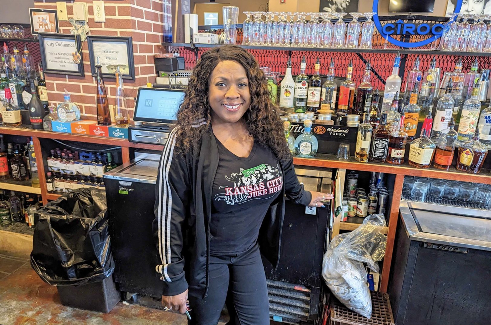 Andrea Shelby, the owner of the Kansas City Blues and Jazz Juke House, came to work early to prepare the bar before opening for their popular Wednesday 2-step nights. The Juke House is the most popular Bar and Grill on the Vine district and it located just east from the Negro Leagues Baseball Museum; photo by Lawrence Brooks IV, KCUR