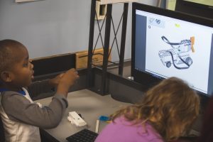 Back in the SmartLab, children might look like they’re playing with toys, but a deeper process is in motion. They’re following step-by-step schematics on a computer to build a motorized LEGO car. They’re using an iPad to navigate an electronic sphero ball through a maze. They’re getting a taste of graphic design.