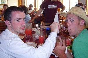 They tailgated every day in the parking lot after school. They set up lawn chairs in the middle of an intersection and waved at passing cars. Later, they went parasailing together in Minnesota.