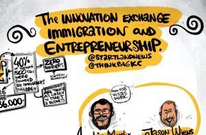 Tucked amid a crowd of about 80 people at Think Big Partners Tuesday, Kansas City artist Jasur Rakhimov swiftly sketched a conversation unfolding before him on immigration and entrepreneurship. A cartoon-style artist, Rakhimov stopped by Startland News’ fifth Innovation Exchange that focused on immigration and entrepreneurship to not only share his talents but also to…