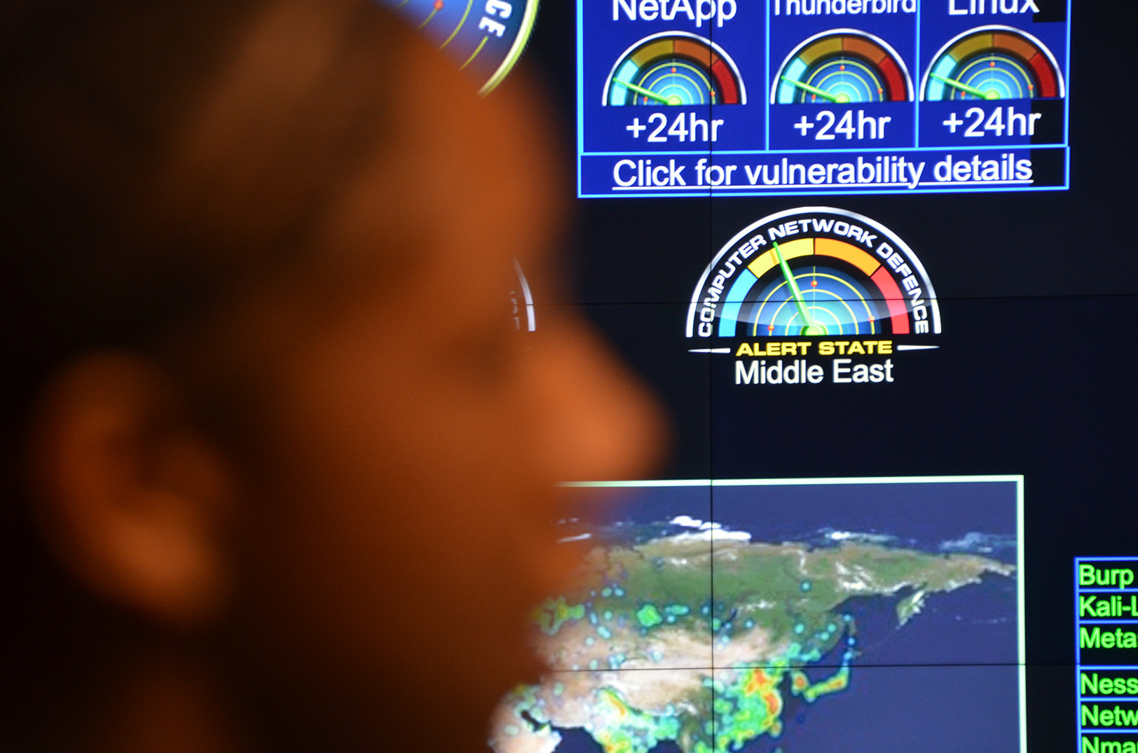 “You want to graduate high school and you want to work on a route that will get you into this industry,” Meyers told girls in her group before taking them into the facility’s cyber security operations center (CSOC).