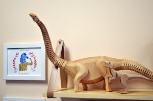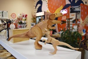 Ditch the plastic toys for Detour Goods’ wooden dinosaurs. Brent Eudaly carefully crafts each sculpture by hand, intentionally incorporating sustainable practices into the business he runs with his wife, Jordan.