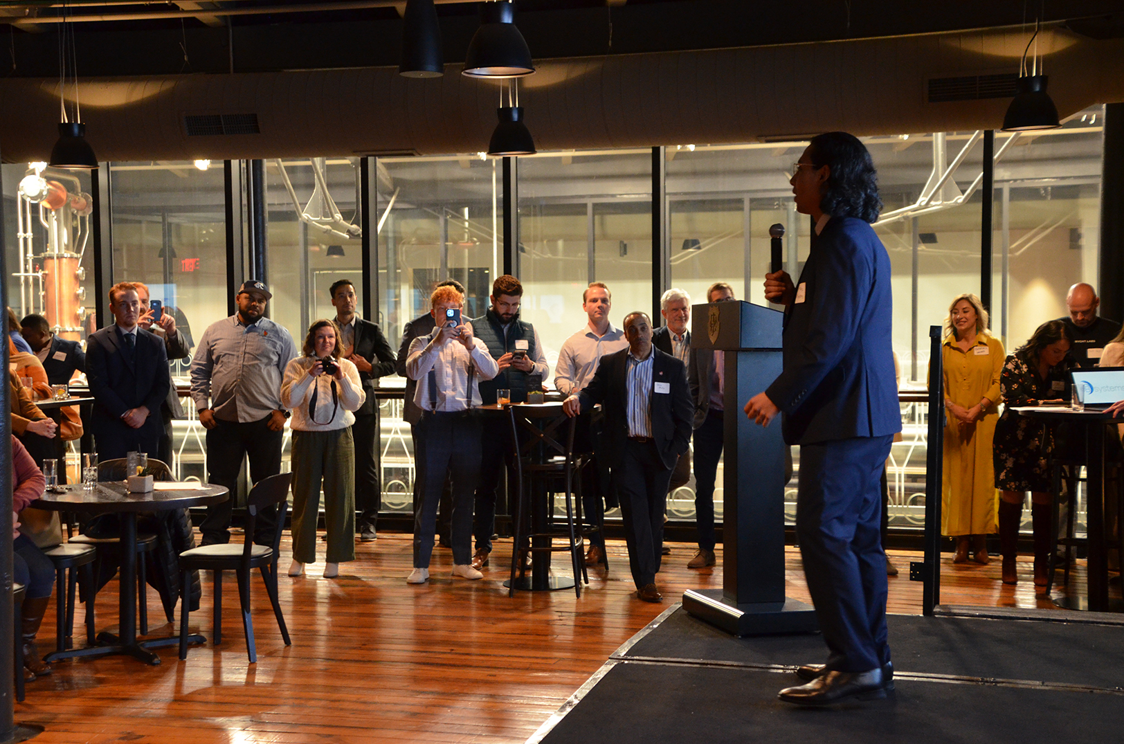Jon Ruiz, EB Systems, gives a mini-pitch during the 2022 LaunchKC grants announcement and celebration event