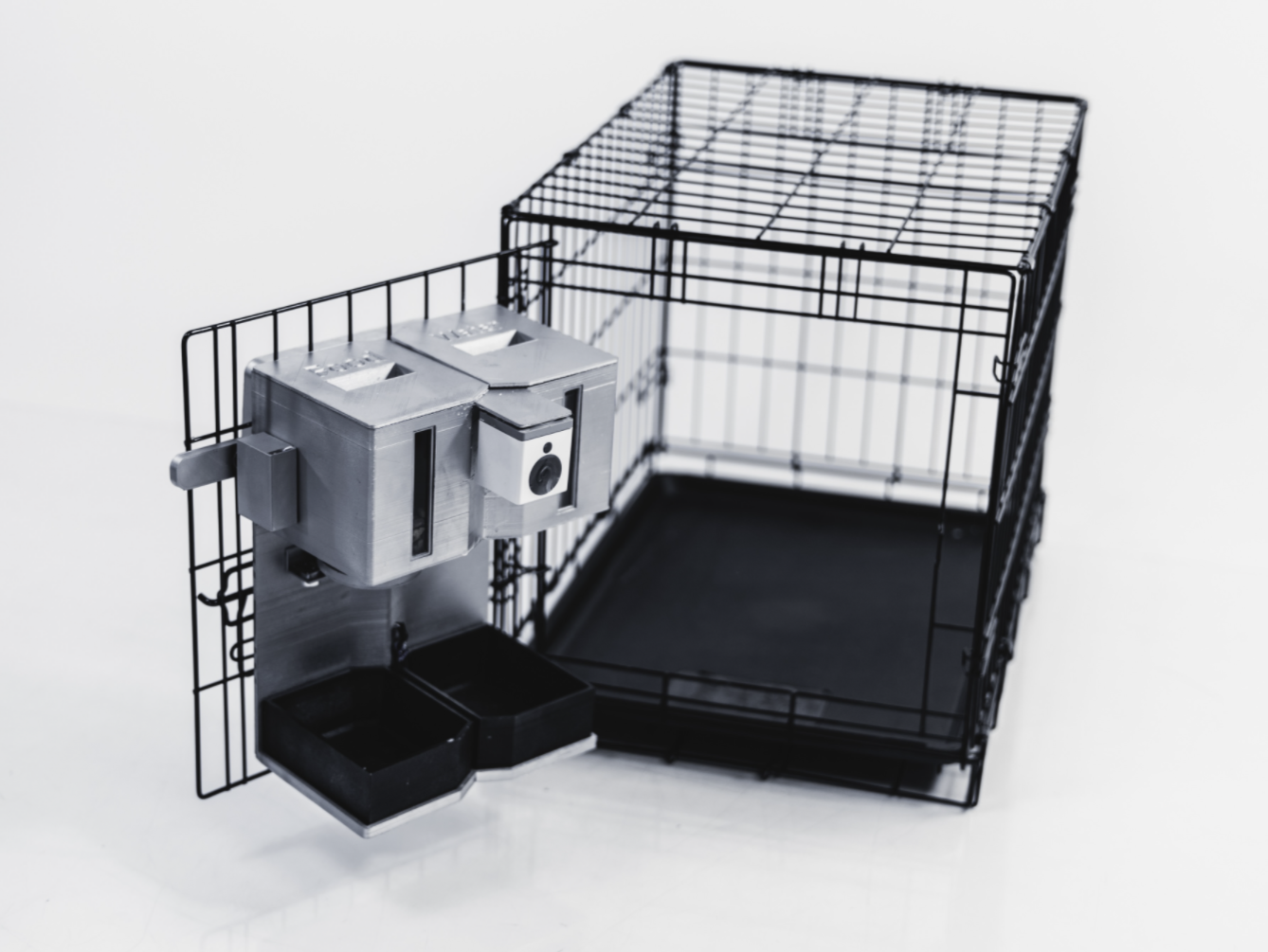 Looking to be the “Apple of the pet tech industry,” Interplay’s premier product is the PlayTach — a dog crate attachment that allows a pet parent to virtually dispense food and water; see and talk to their dog; and open and close the crate through a smartphone app.