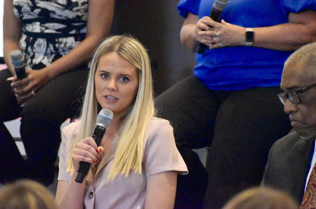Elaina Paige Thomas, The Next Paige Agency, speaks during a panel conversation featuring the 2024 finalists for the “Mr. K” Award; photo by Nikki Overfelt Chifalu, Startland News