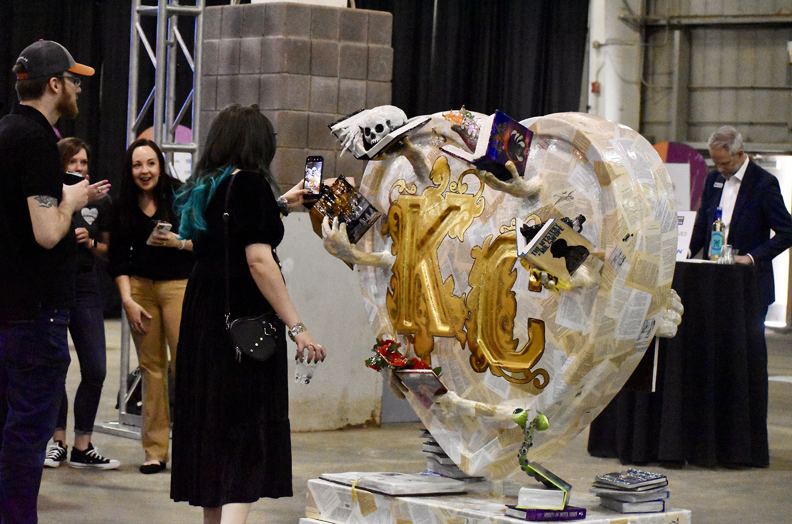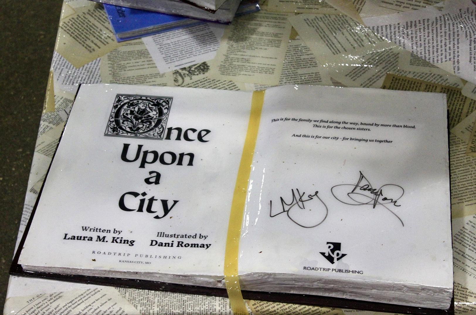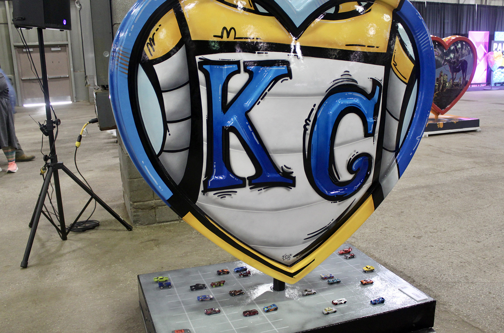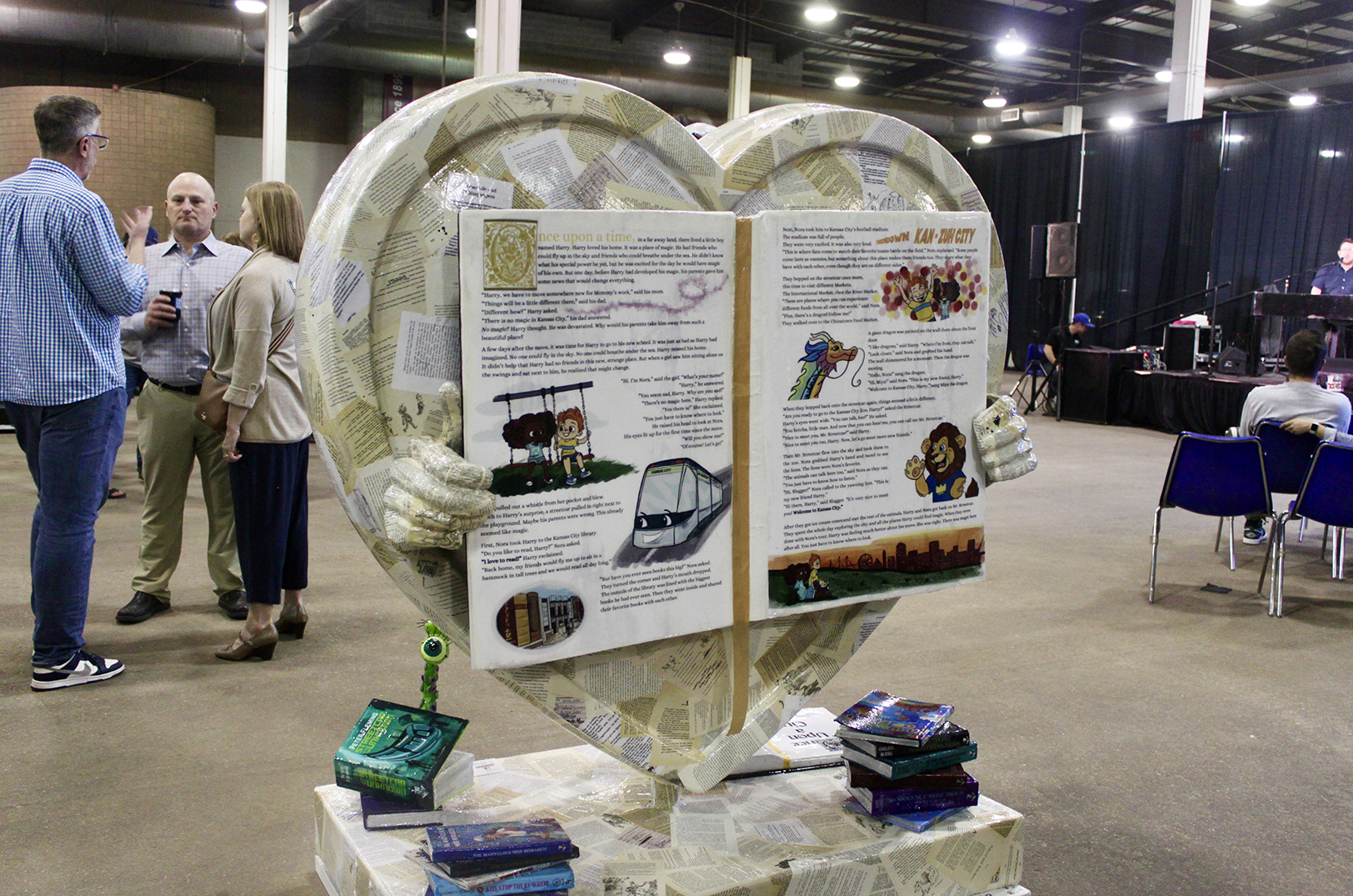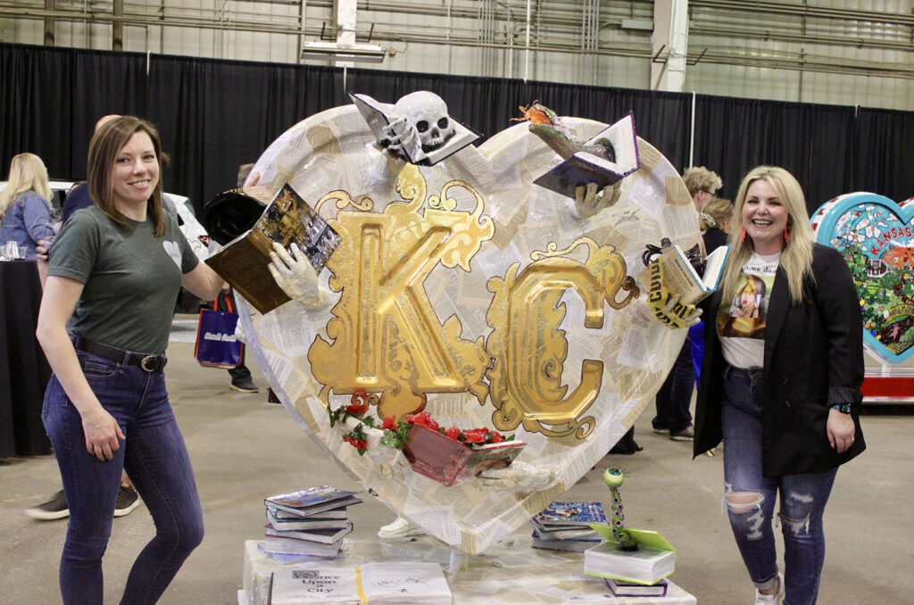 “We joined our two loves,” Romay noted of the heart, which features a story on the back about Kansas City that is written by King and illustrated by Romay, plus books that represent the six major genres of fiction, with KC-inspired titles and summaries done by King and covers designed by Romay.
