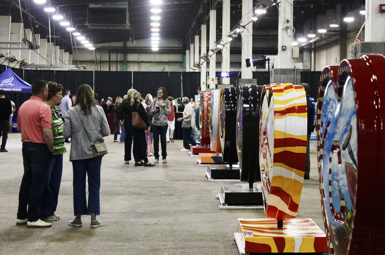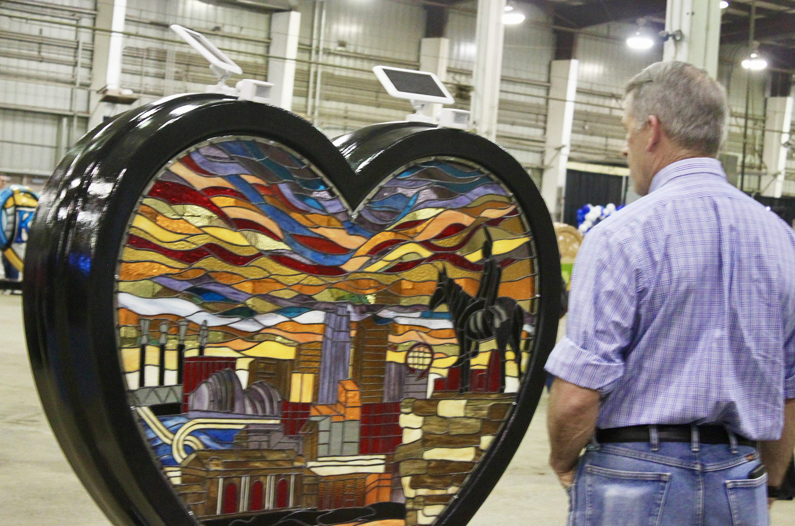 Parade of Hearts entries are seen during an unveiling event; photo by Nikki Overfelt Chifalu, Startland News