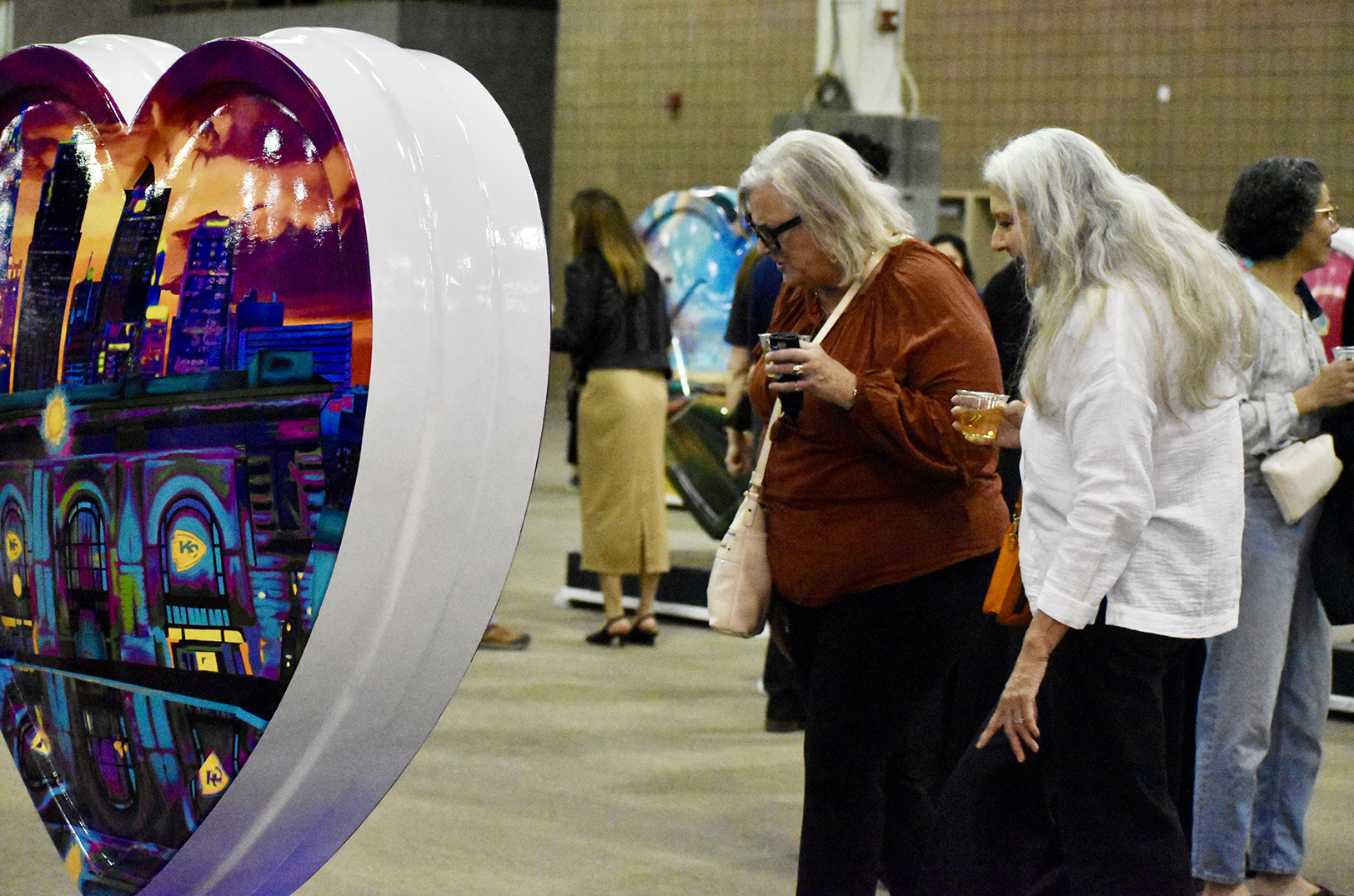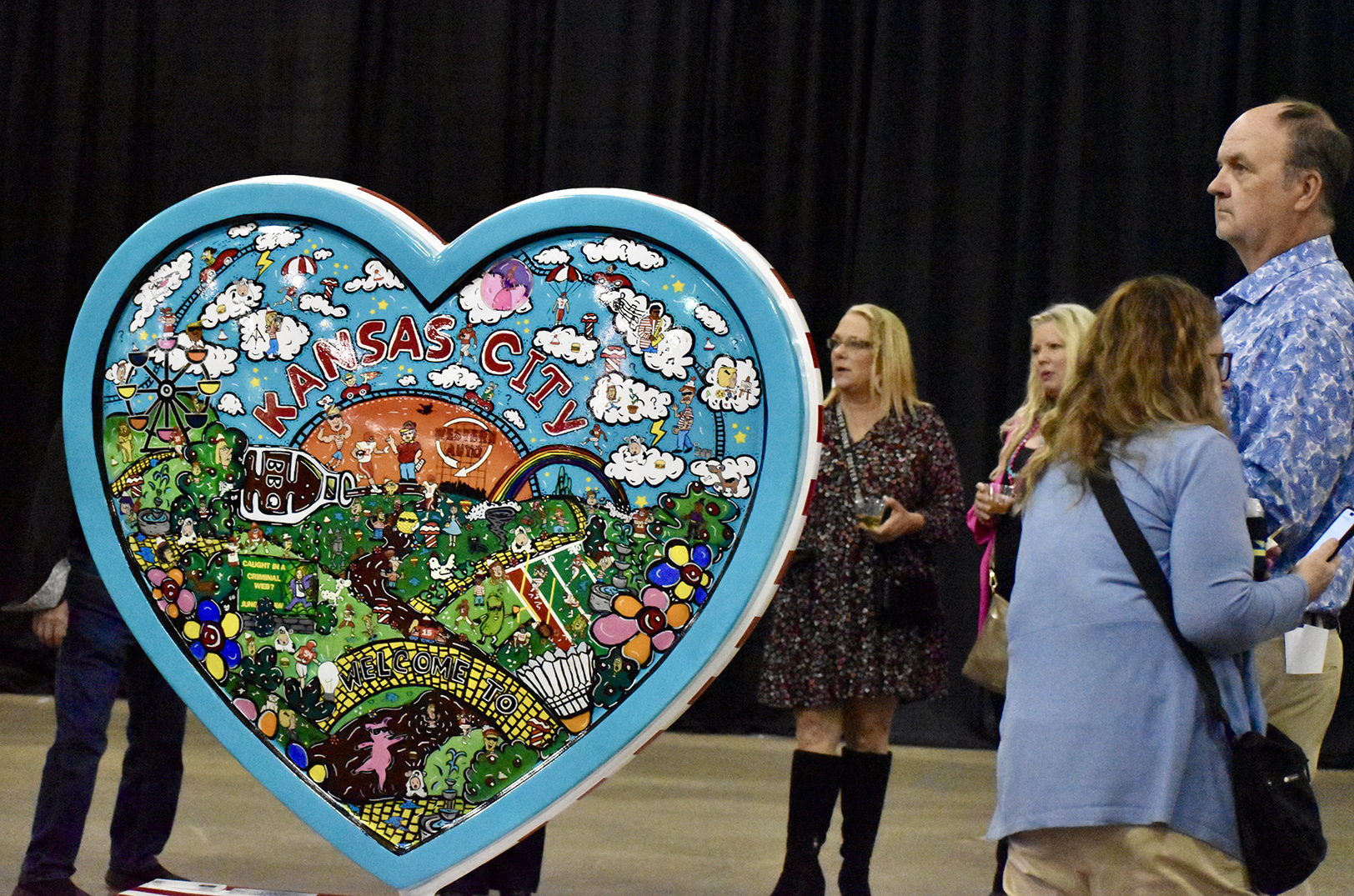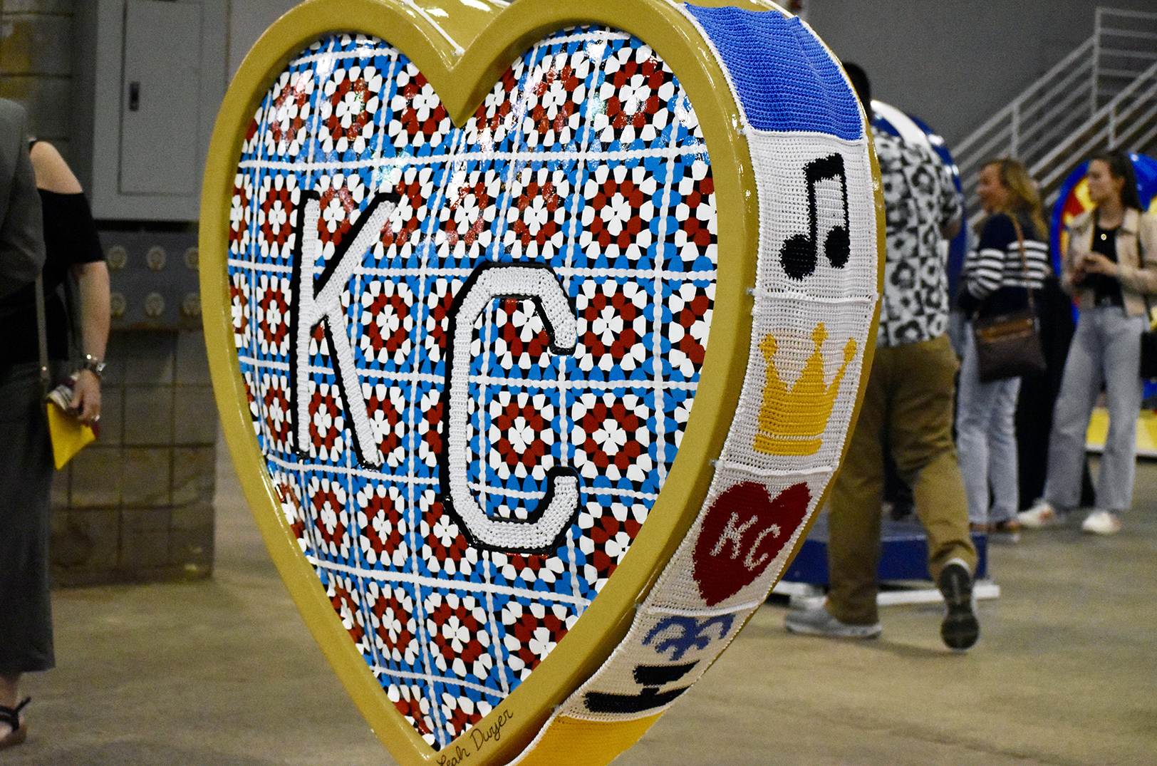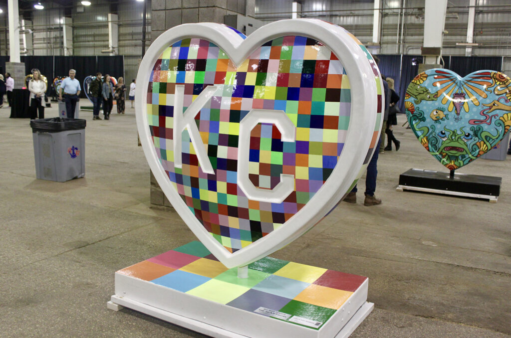 Skiggity’s “Blurring Together” heart was one of the 100 Parade of Hearts entries for 2024 that were unveiled Friday at American Royal Hale Arena. The five-foot heart art pieces are set to be on display across the city April 27 through August.