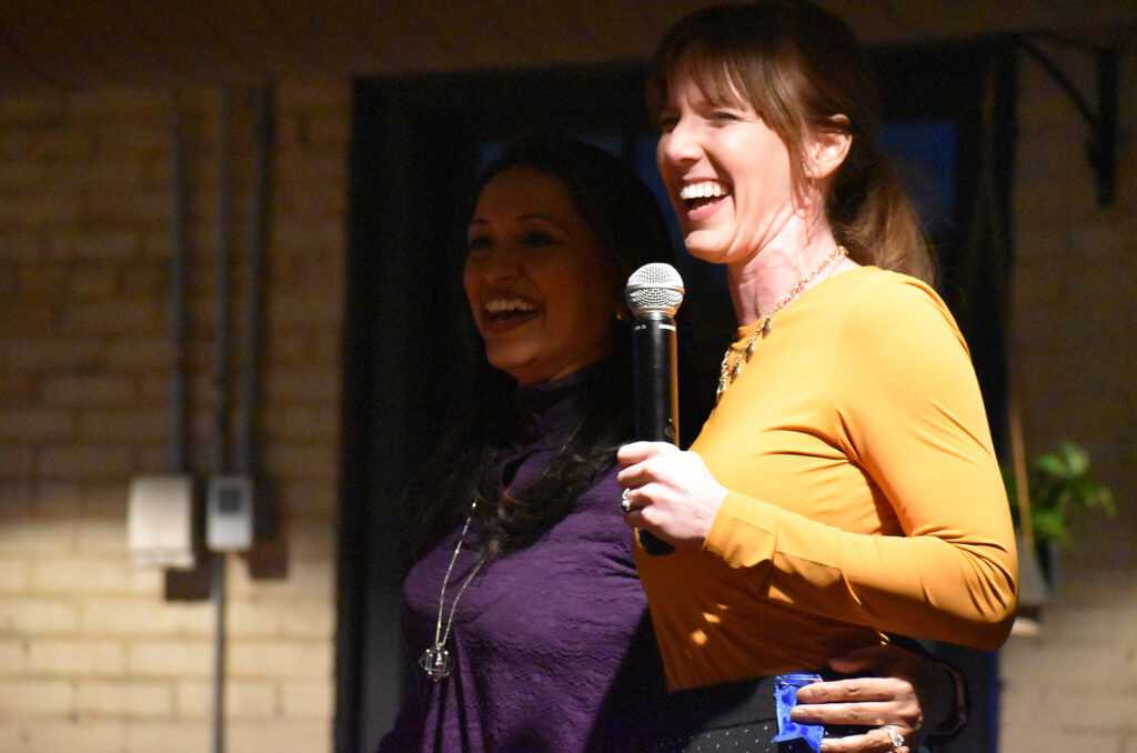 Neelima Parasker and Holly Andra Small, Lotus TMS, at the 2023 LaunchKC reveal celebration; photo by Tommy Felts, Startland News