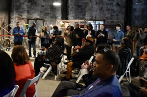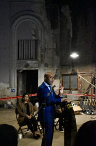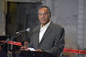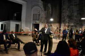 Damron Russel Armstrong, founder of the Black Repertory Theatre, speaks during a groundbreaking event at the Boone Theater; photo by Taylor Wilmore, Startland News