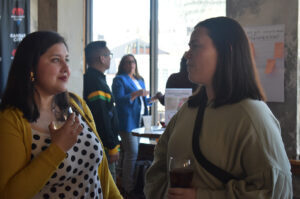 Nia Webster, assistant director of Neighborhood Services Department, which oversees the KC BizCare Office, and Tracy Whelpley, director of regional impact for FIFA World Cup Kansas City, speak during a town hall event organized by KCMO’s Small Business Task Force; photo by Taylor Wilmore, Startland News