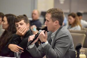 Jon Crawford pitches his Kansas City startup, Wellphoria, during the BioKansas Startup Pitch Competition at Innovation Festival; photo by Nikki Overfelt Chifalu, Startland News