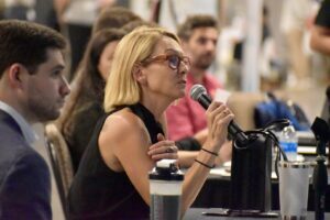 Tricia Keightley pitches her startup, Portrayals XR, during the BioKansas Startup Pitch Competition at Innovation Festival; photo by Nikki Overfelt Chifalu, Startland News