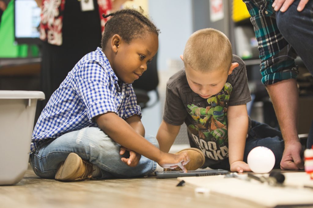 Read More >Two small boys are standing on stools at a workbench, pretending to talk on outdated handset telephones. They might not yet know how the phones work, but they’re clearly familiar with how to take them apart. And they do. A few feet away, three children from low-income families are on iPads beginning a new lesson.…