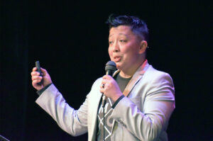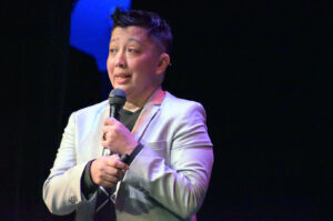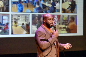 Atticus Sloan delivers his pitch for E-Z Pedicabs during the 2024 AltCap Your Biz pitch competition; photo by Nikki Overfelt Chifalu, Startland News