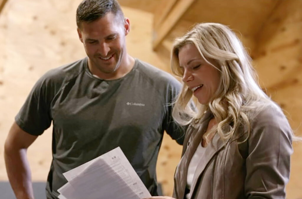 Fromer Chiefs guard Nick Allegretti, now with the Washington Commanders, poses alongside Amanda Carlo, Gold Griff Athlete Agency