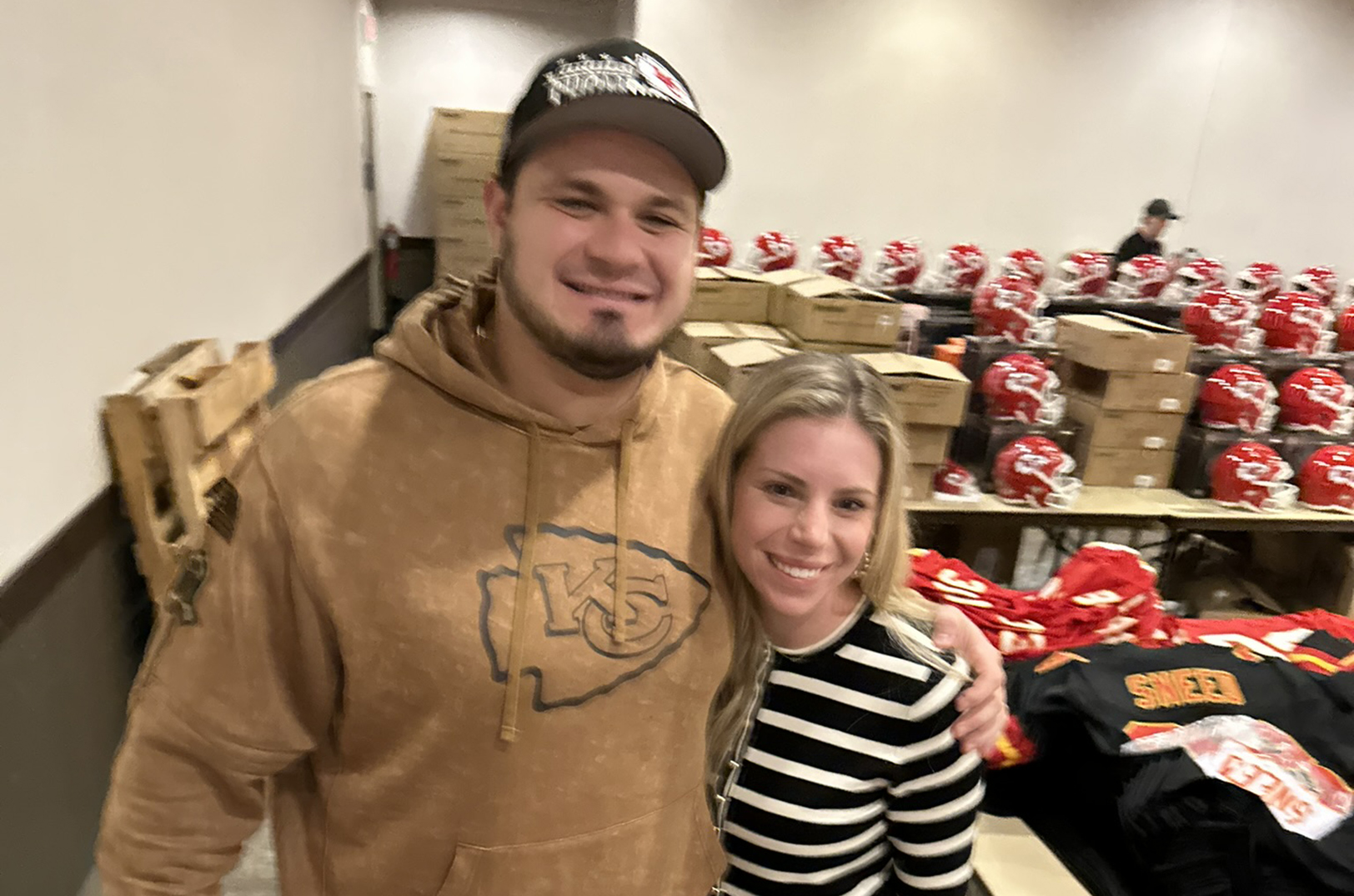 Chiefs long snapper James Winchester with Amanda Carlo, Gold Griff Athlete Agency; photo courtesy of Gold Griff Athlete Agency