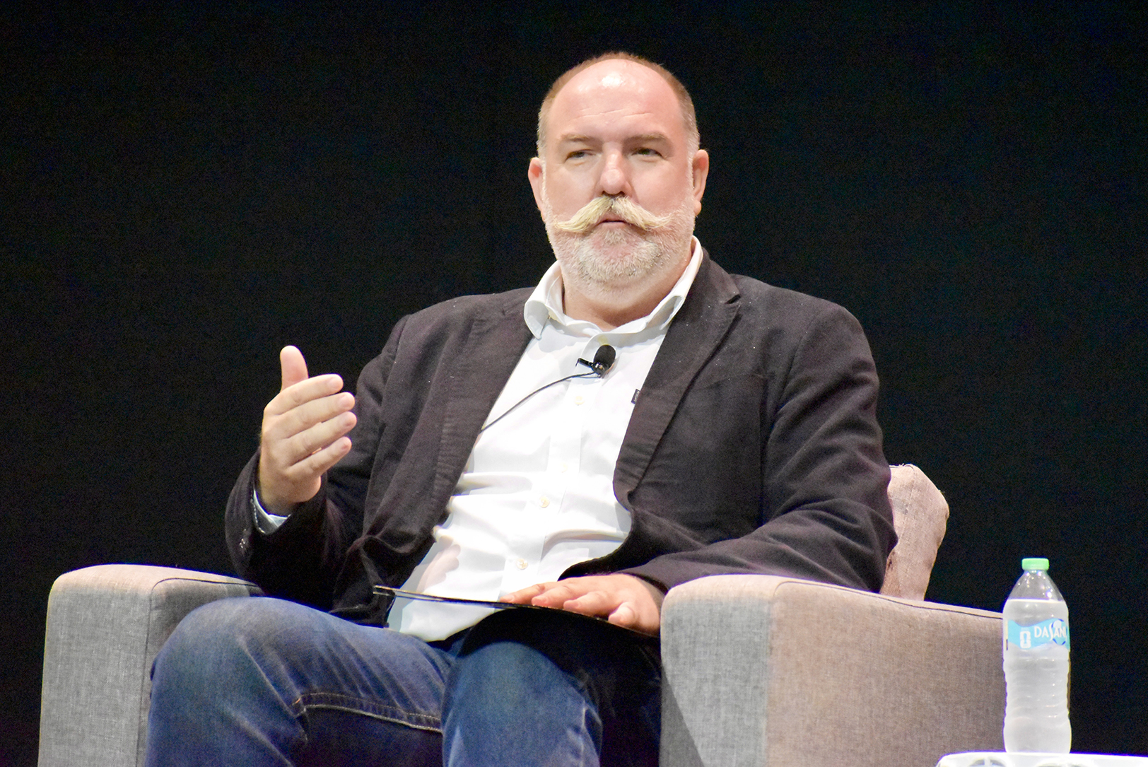 David Smith, Ceres Tag, speaks on stage during the KC Animal Health Corridor’s Animal Health Summit; photo by Nikki Overfelt Chifalu, Startland News