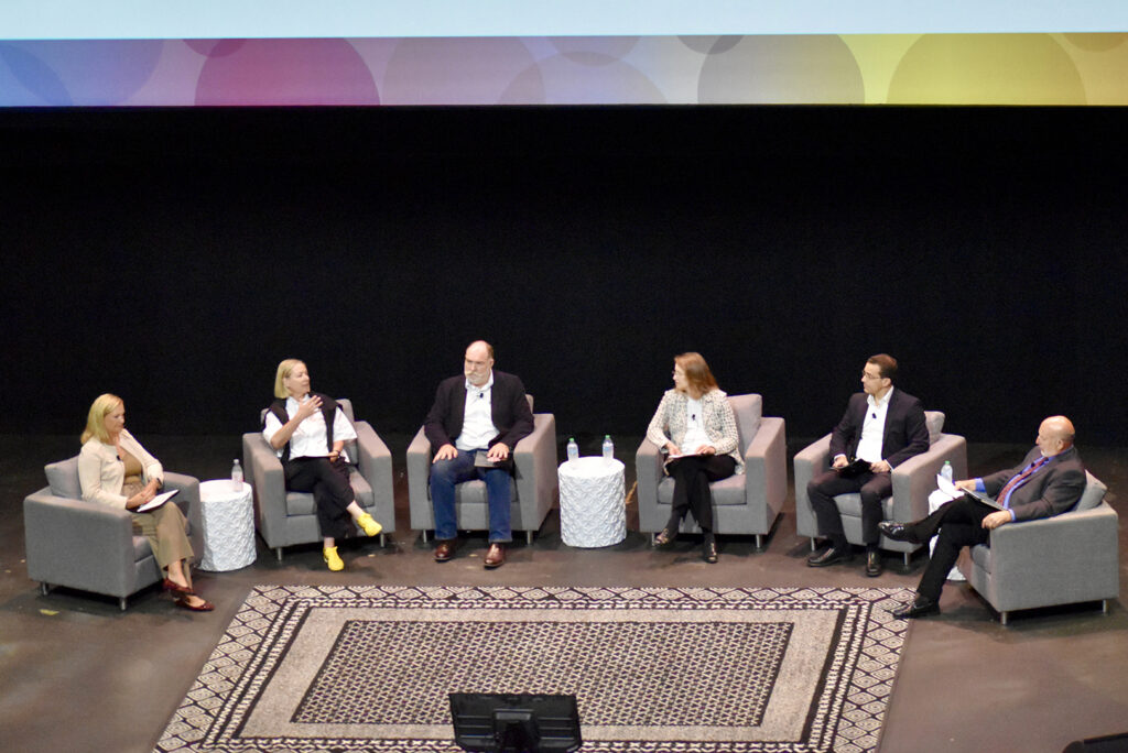 A panel of past emerging companies meets on stage at The Midland Theatre during the KC Animal Health Corridor’s Animal Health Summit; photo by Nikki Overfelt Chifalu, Startland News