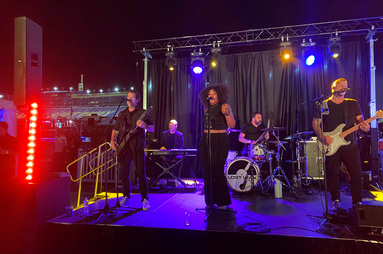 The band Lost Wax performs at the 2023 ARtechBBQ, the biggest-ever, according to event organizers. Lost Wax has played the annual tech celebration for years, before gaining notoriety as the Kansas City house band during the NFL Draft event; photo courtesy of ARtechBBQ