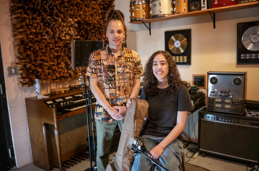 Enrique Chi in the LAB, a music studio in Overland Park owned and operated by Art as Mentorship, along with fellow J Buch. Missouri Gov. Mike Kehoe vetoed $198,000 in state funding to the organization; photo courtesy of Scout Tufankjian, Art as Mentorship