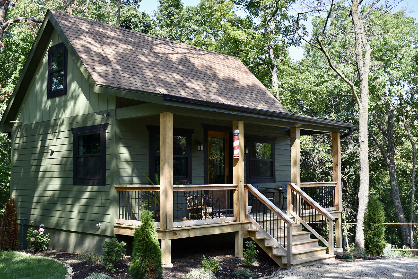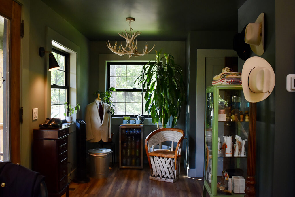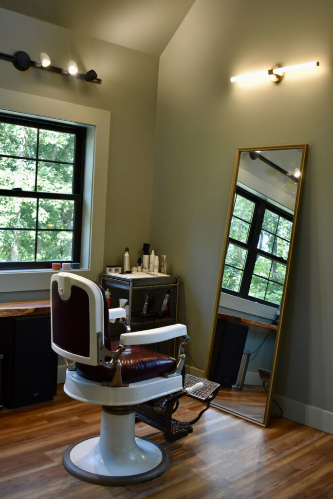 After running Barberhouse Men’s Hair Studio in a speakeasy-style basement studio of his historic Hyde Park home for almost a decade, Holdaway moved his single-chair operation (and his family) to a cabin (and house) they built in the woods on 20 acres outside of Lee’s Summit.