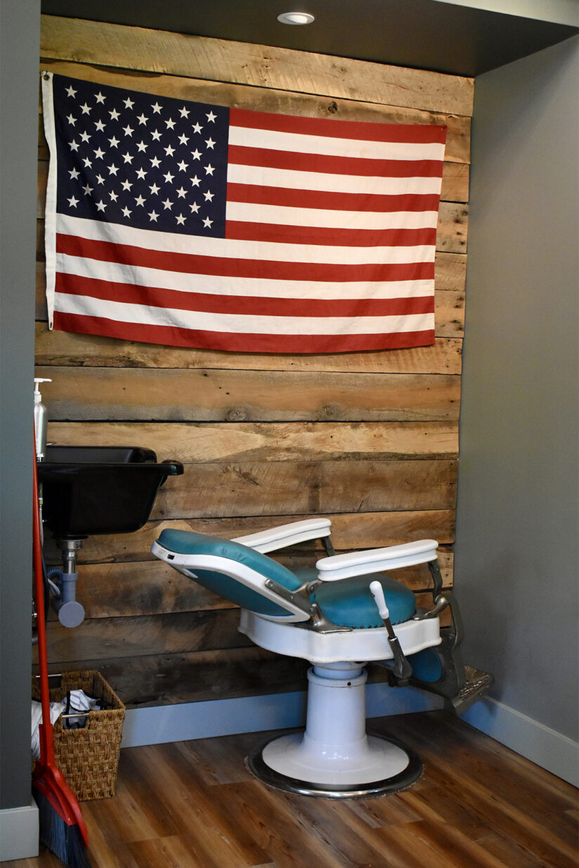 Micah Holdaway’s classic barber chair at Barberhouse Men’s Hair Studio; photo by Nikki Overfelt Chifalu, Startland News