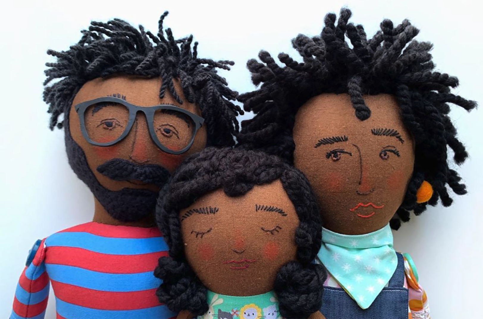 Her yearning for a creative outlet persisted, and she pivoted to a new medium that was more kid-friendly. She started by embroidering the silhouettes of people and animals onto pillows for her son to hold. Eventually, she made her first doll for him.