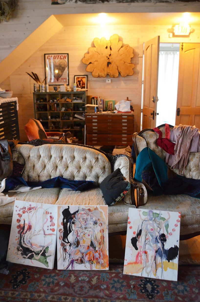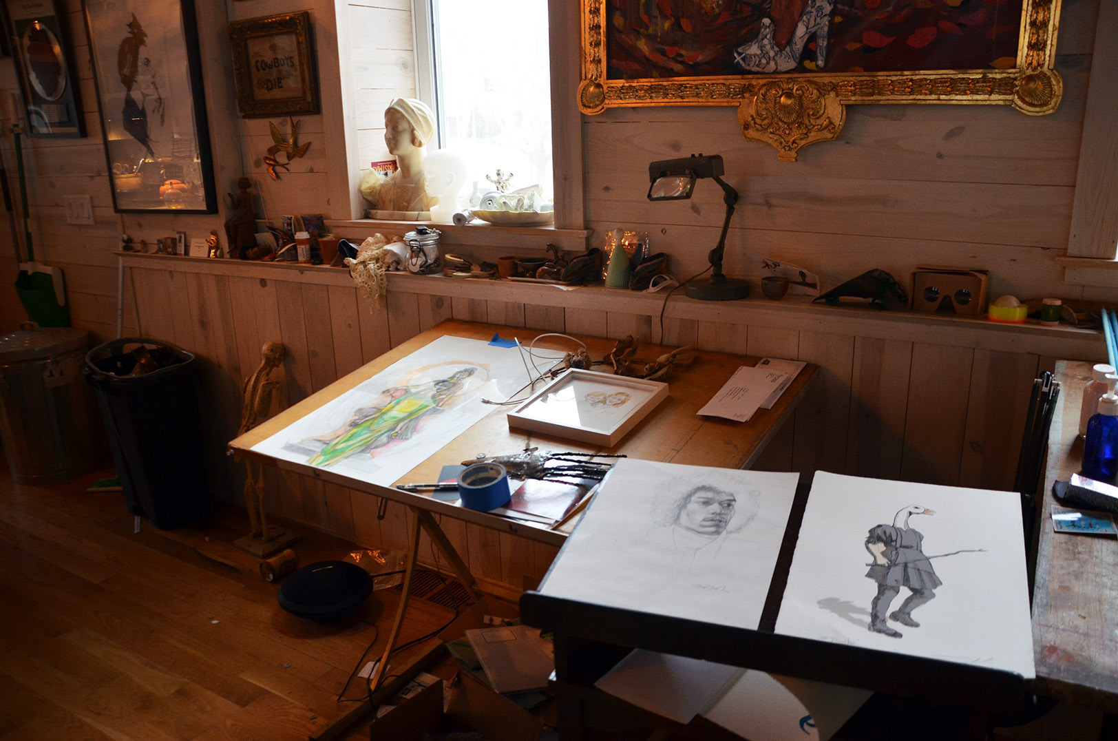 Body of artwork: Birdies’ Peregrine Honig sketches business artistry from Crossroads lingerie shop