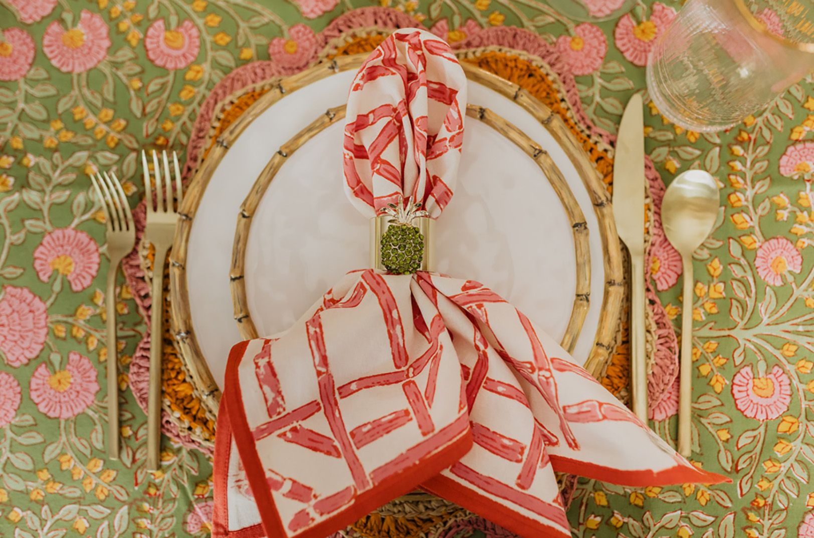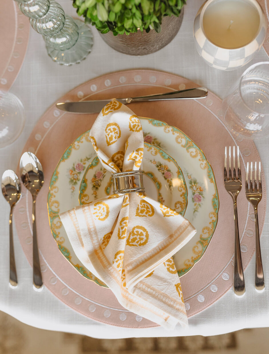 Through its three-year-old online shop, Blair & Blythe carries “elevated tabletop” items including fine china, flatware, drinkware, cocktail and dinner napkins, tablecloths and table runners, and candleholders, as well as stationery, lamps, Mahjong game accessories, and furniture (currently swivel chairs, bar carts, Winchester chests, rattan coffee tables and more).