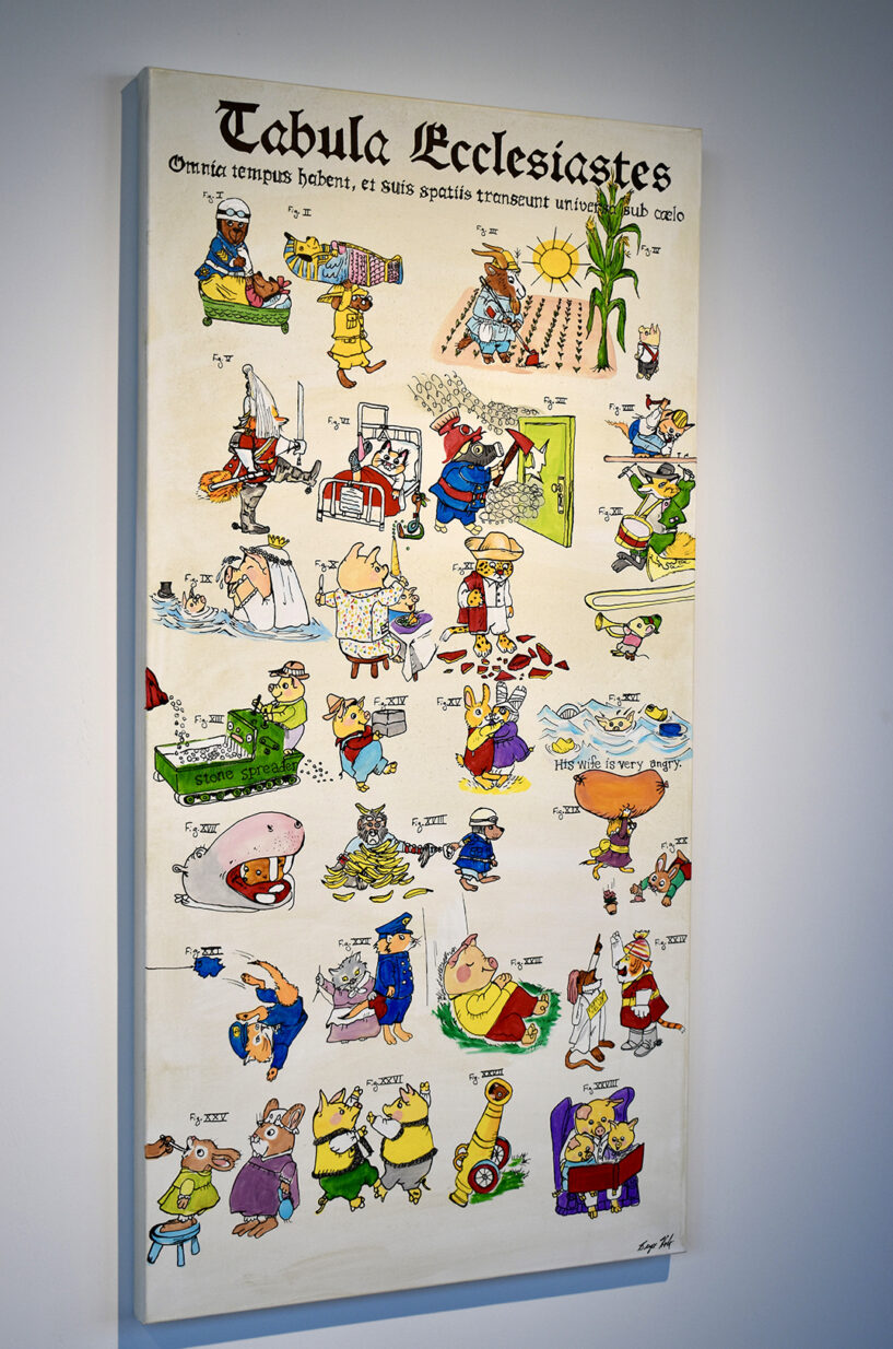 The painting for Ecclesiasties — Tabula Ecclesiastes — is Kyle Holt’s favorite. With the characters of Richard Scarry illustrating the seasons of life, he said, it invokes a feeling of nostalgia, remembering when he read those books as a child and now to his own children.