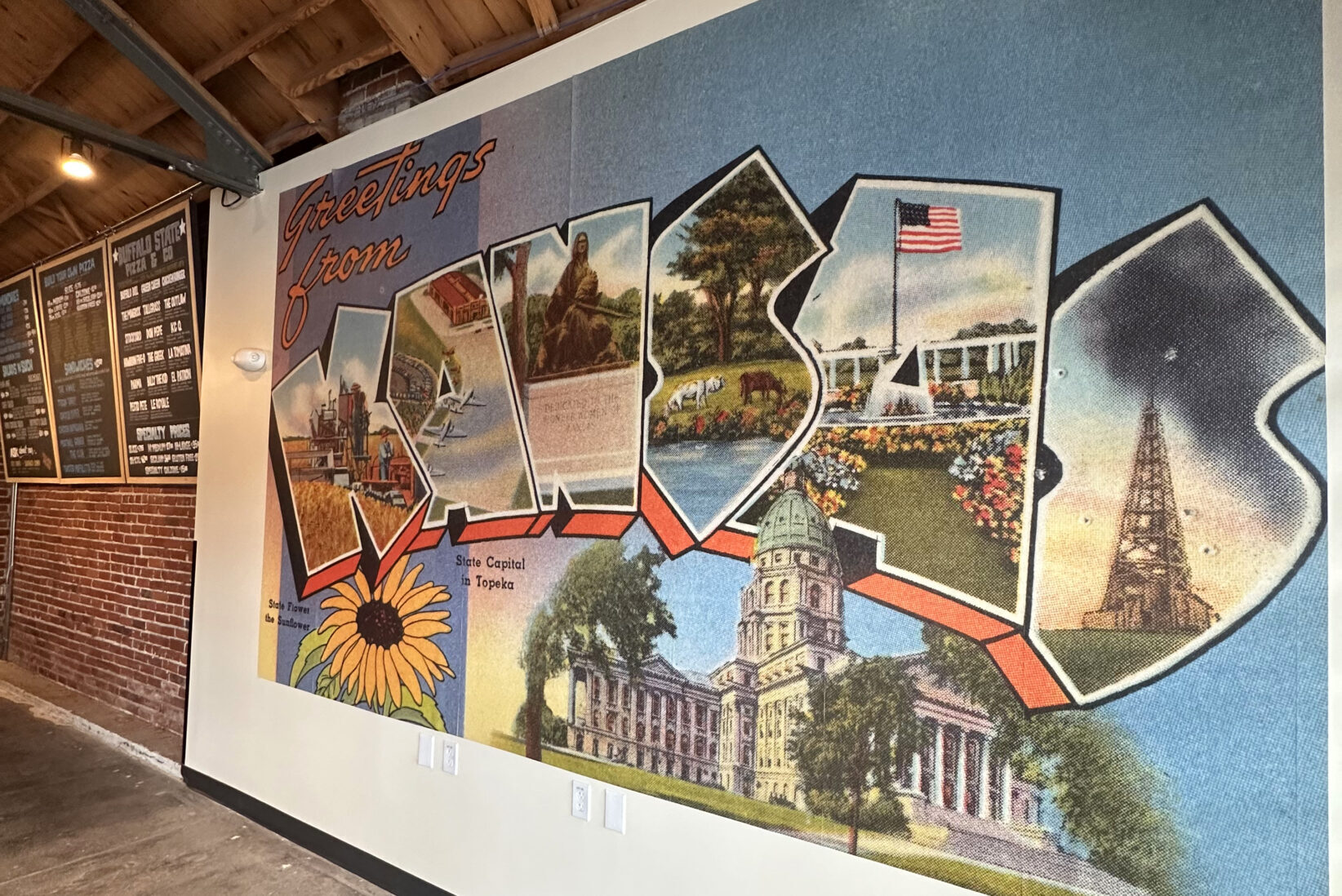 The exposed brick walls feature colorful Buffalo-themed pieces by longtime Overland Park artist Nicole Emanuel (she also did the pieces at the old restaurant).