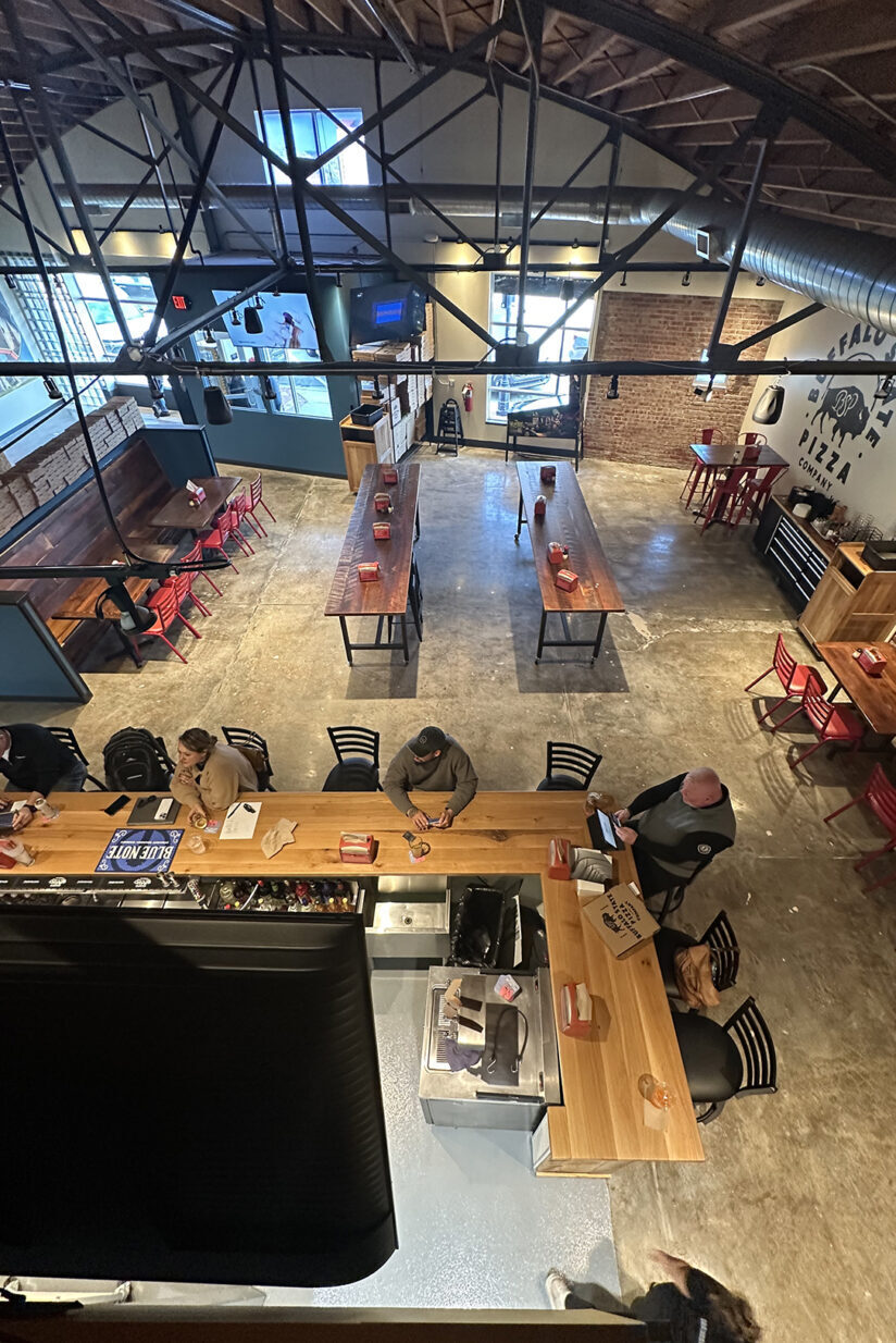 An upstairs mezzanine at Buffalo State Pizza overlooks the new dining area that can seat up to 50 people; photo by Joyce Smith