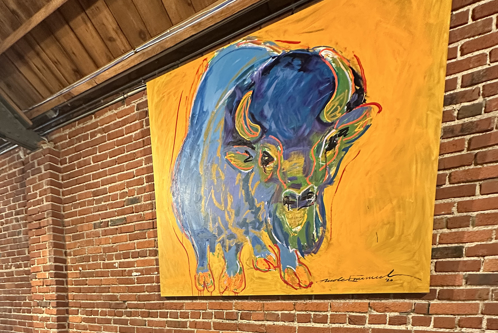 A buffalo-themed painting by longtime Overland Park artist Nicole Emanuel at Buffalo State Pizza; photo by Joyce Smith