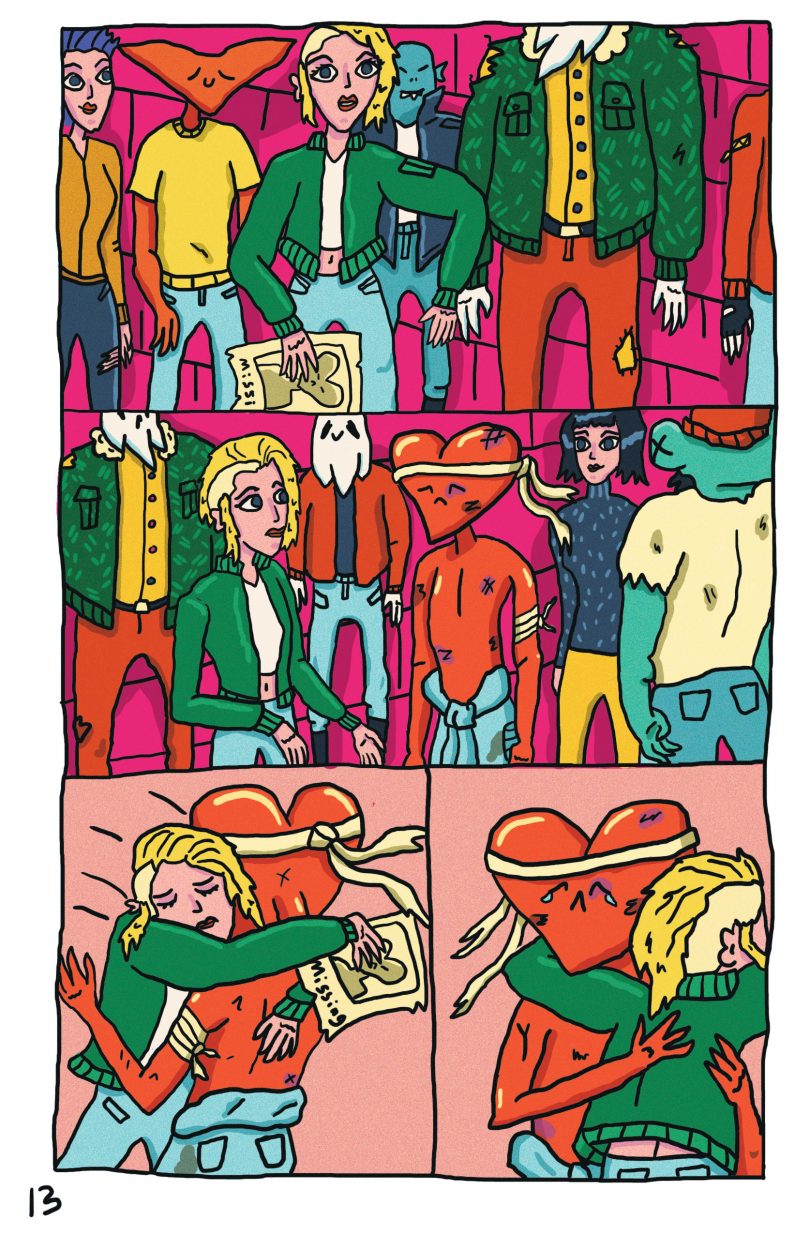 The narrative rounds out and ends with Hanscum’s zine comic, “Lost,” in which Buttman is the vessel for a story about loneliness and low self worth, he said, noting it follows Buttman through a journey that eventually ends with him reconnecting with friends.