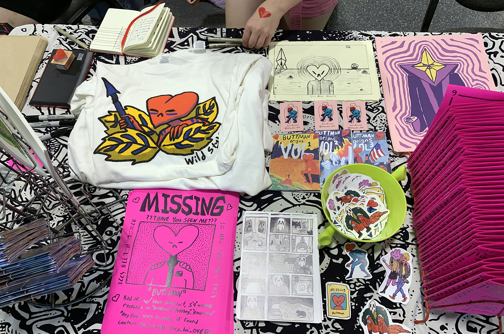 As the illustrator and “agent” for Buttman, he created a rich comic book world that featured the protagonist in many of Hanscum’s zines and illustrations, fascinating his studiomates and instructors. Recently, however, Buttman disappeared from all of his works, he said.