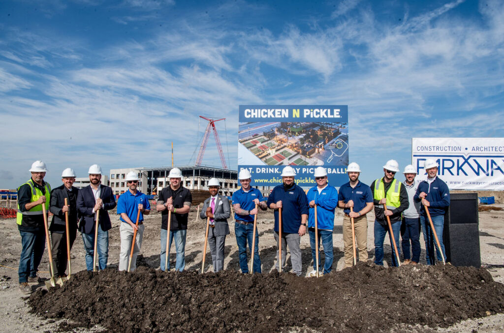 Groundbreaking for construction of Chicken N Pickle in Allen, Texas; photo courtesy of Chicken N Pickle