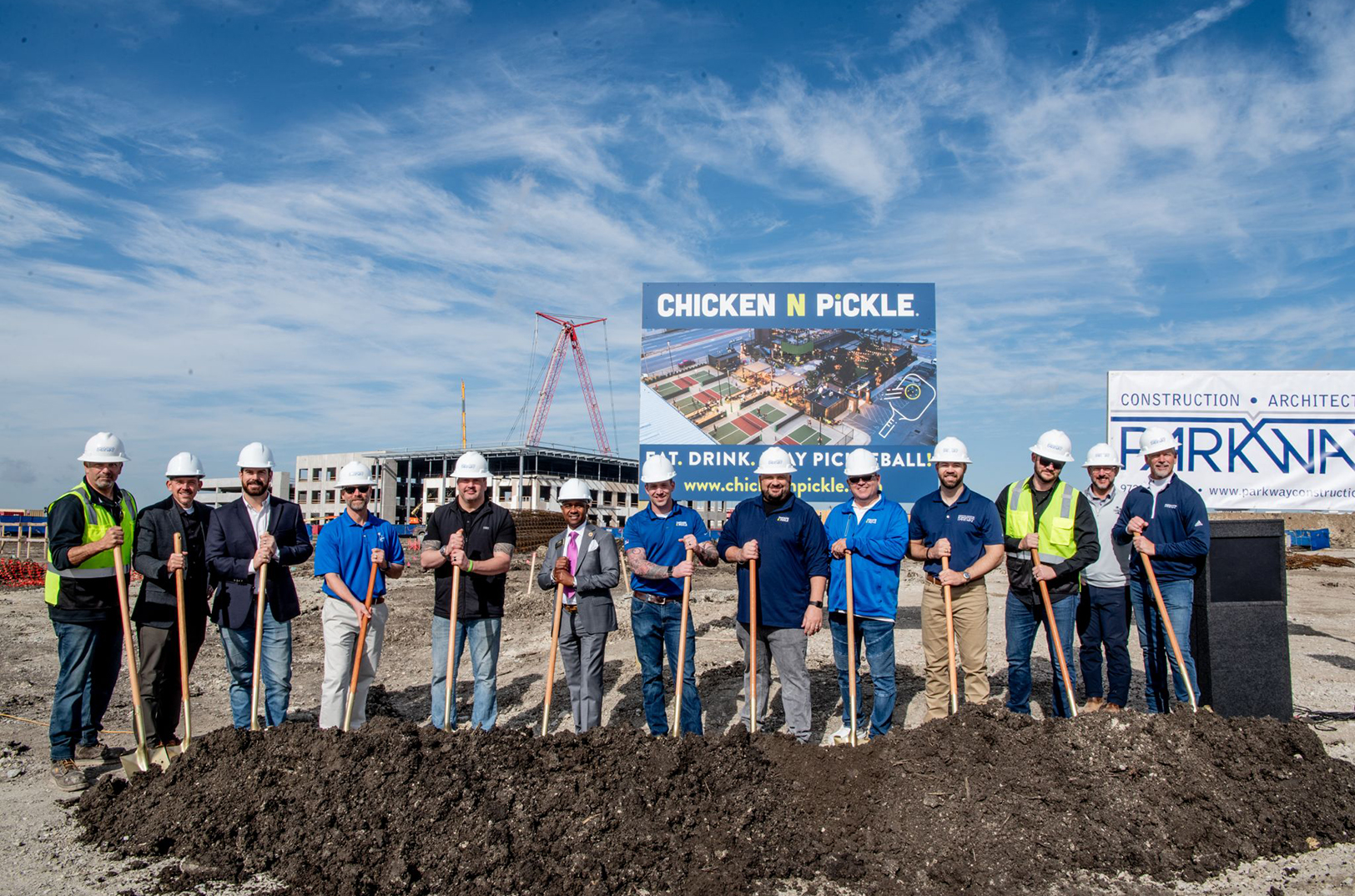 Groundbreaking for construction of Chicken N Pickle in Allen, Texas; photo courtesy of Chicken N Pickle