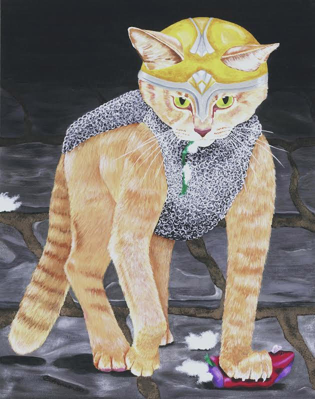 Bohannon created an entire medieval series of five fantasy paintings. The other four pieces were inspired by cats at Another Chance Cat Rescue, where Bohannon serves as a board director and volunteers every Saturday.