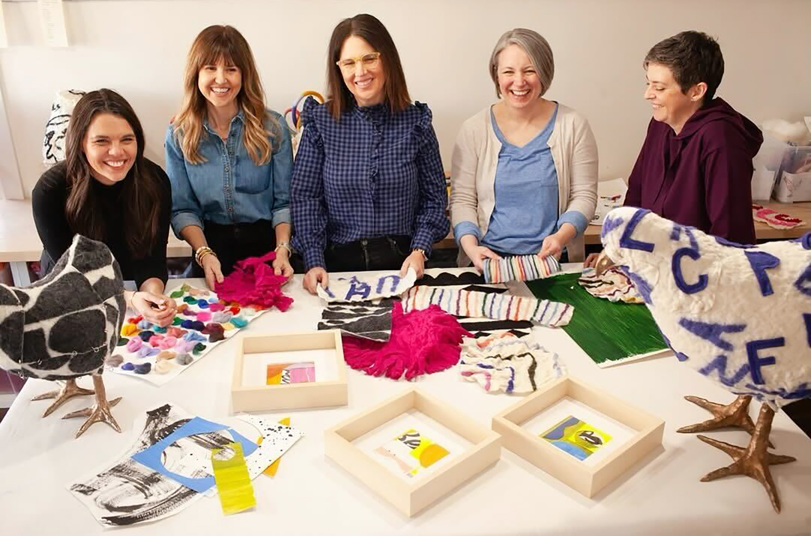 Carly Pumphrey, Morgan Georgie, Carrie Kiefer, Allison Gould, and Emily Blodgett-Panos, the teams from Ampersand Design Studio and The City Girl Farm; photo courtesy of Mission Hills City Lifestyle Magazine, Becca Spears