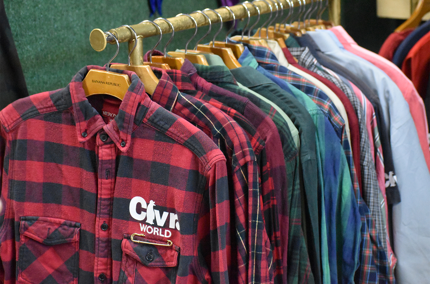 Shirts from Clvr World Goods and Supply for sale at The Porter House KC’s 811 Retail Incubator; photo by Taylor Wilmore, Startland News