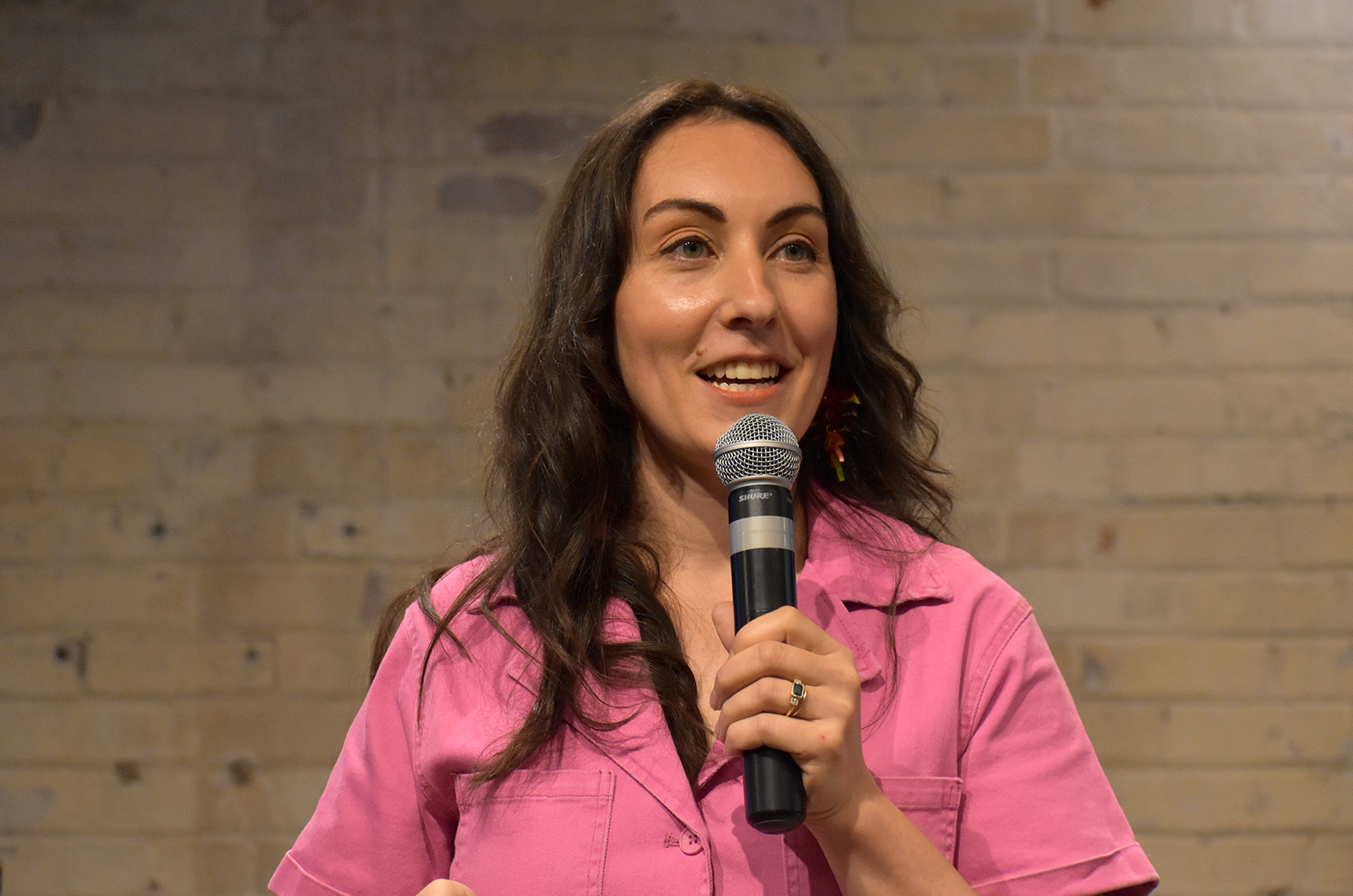 Colleen Robertson, Floraloom, details her entrepreneurial journey at CreativeMornings KC; photo by Taylor Wilmore, Startland News