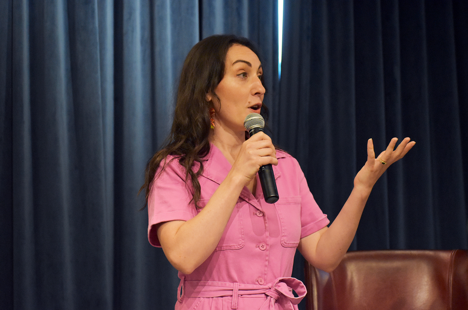 Colleen Robertson, Floraloom, details her entrepreneurial journey at CreativeMornings KC; photo by Taylor Wilmore, Startland News