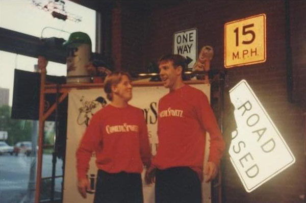 Billy Brimblecom and Jason Sudeikis on the small stage in what was known as the “Smoking Turtle Lounge” during the ComedySportz National Tournament in 1996.