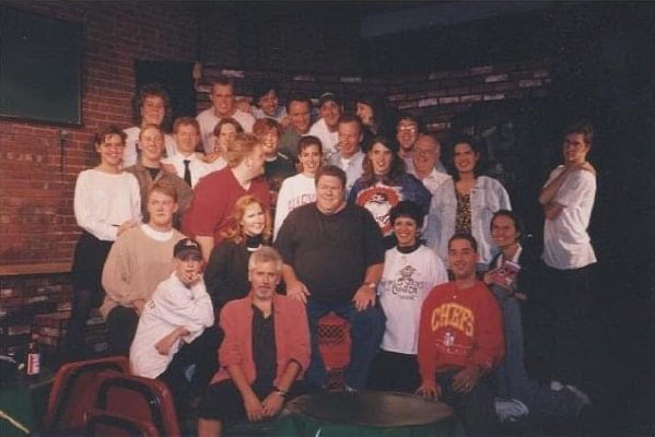 ComedySportz team photo when comedian George Wendt — who attended Rockhurst College (now Rockhurst University) in Kansas City and who also is Jason Sudeikis’ uncle — came to visit the River Market location.