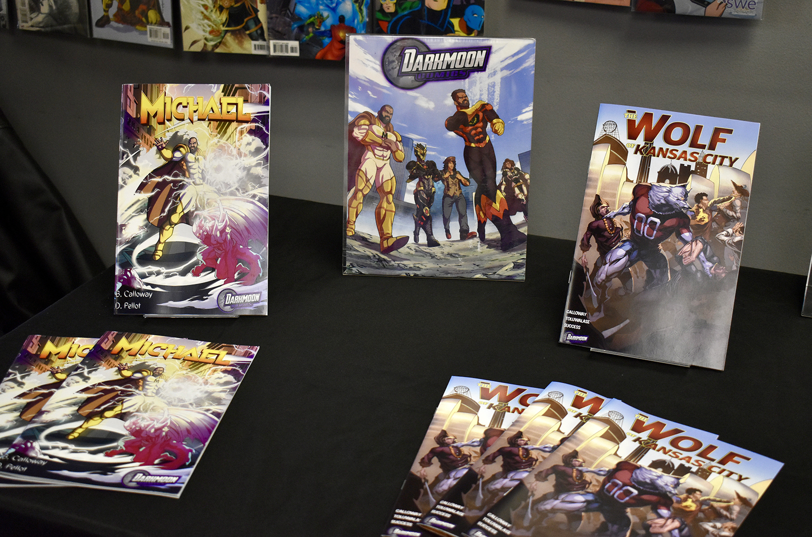 A selection of Darkmoon Comics titles for sale at Comic Coffeehouse in Olathe; photo by Nikki Overfelt Chifalu, Startland News