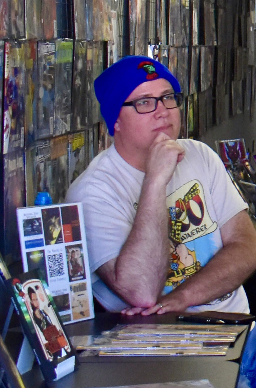 Comic creator and author Aaron Conaway during an event at Comic Coffeehouse in Olathe; photo by Nikki Overfelt Chifalu, Startland News
