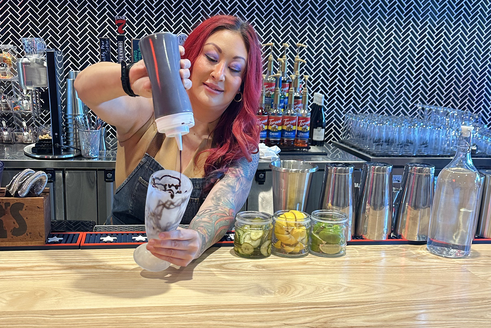Mari Matsumoto, beverage director at Cosmo Burger XR, crafts a milkshake at the bar; photo by Joyce Smith