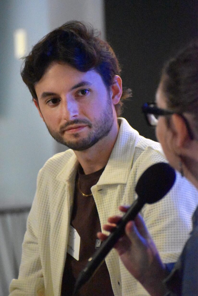 Wes Elder, CreatorSpace, interviewed by Nikki Overfelt Chifalu about his company during Startland News’ August 2024 Innovation Exchange event at Plexpod Flashcube; photo by Tommy Felts, Startland News